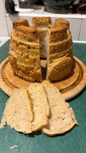 But the disaster struck on Sunday 28th: whilst the sous-chef made this fabulous sourdough bread castle, I wasn’t feeling so good at the kitchen sink. Next I knew, the sous-chef was putting me into the recovery position on the floor. Couldn’t really move so many phone calls by him and eventually an ambulance to A&E on stretcher. More hours on that legendary trolley in the corridor plus x-rays and more tests. Eventually graduated to a side-room overnight with stalwart sous-chef consigned to a hard chair. More blood tests confirmed no heart attack/stroke but a simple faint due to virus/exhaustion/dehydration. Home by Monday evening with no lasting consequences other than an exceptionally sore rear end (landing point) and discovery of yet two more vertebral fractures of indeterminate age! Overall, a good result but still taking the painkillers for that sore end.