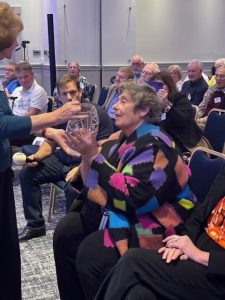 Last weekend’s national Talking News Federation conference was the perfect chance for the experts to share ideas and new ways of helping us all. Thank goodness for all those wonderful volunteers who give up their time and effort to make a real difference to our lives. I was privileged to award the Innovation prize (in the form of one of my pewter cakes) to the Talking News group, harnessing audio technology to deliver what we need.